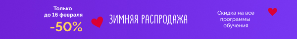 Акция -50% продлится до 16 Февраля. Во время акции вы можете успеть забронировать обучение по сниженной стоимости.